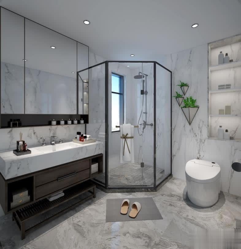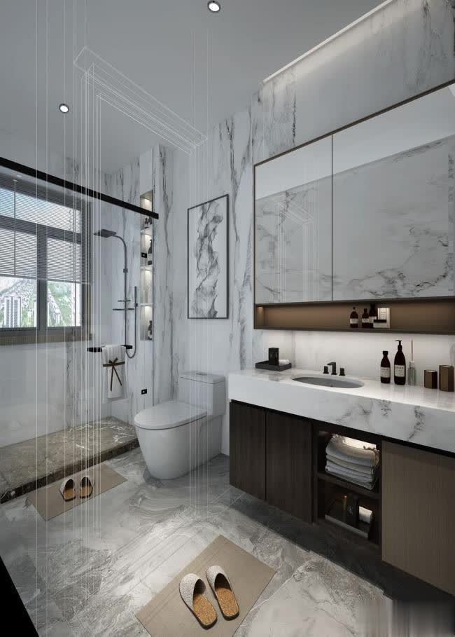 同样延续天然石材为主调,肌理纹路呼应客厅的背景墙体,悬柜与墙收纳得以点睛,保证自然明亮度同时,定格了星级卫生间的视觉,干湿分离的淋浴区均靠近窗户,满足了室内水气的自然“呼吸”更会改善不必要的水气“逗留”,宽敞通透的空间更好的提供了日常打理之便利。