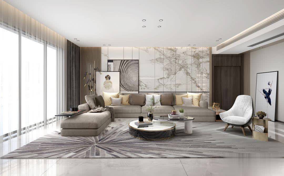 选用近似于鱼腹部颜色的大理石,铺设后的感觉明显有了宝玉般的滋润光泽,瞬间将客厅营造成为高贵典雅的化身,选用同色系的沙发组合以及地毯,将整个色调感赋予了宁静,一股自然力量恒生,复古的地灯映衬下更显其空间的大气浑然。