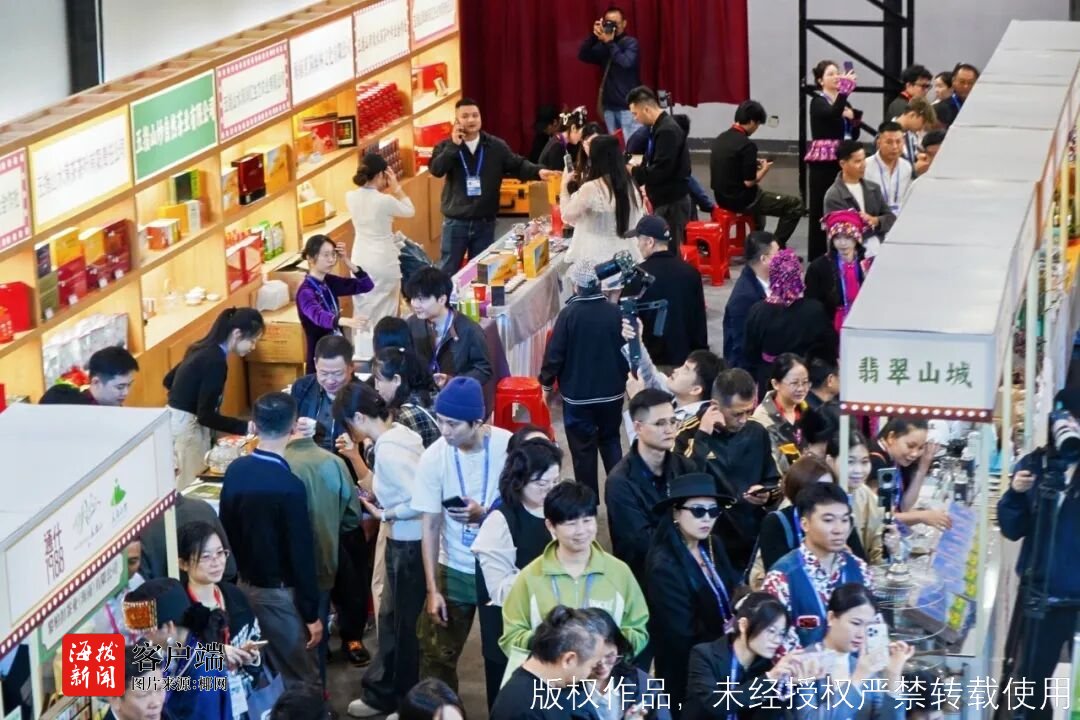 同时,展馆内的两侧,则精心打造了“五指山雨林大叶茶体验区”。五指山优越的自然环境为茶叶的生长提供了得天独厚的条件,这些雨林大叶茶,叶片肥厚,茶香浓郁,冲泡后滋味醇厚回甘。不同的展位展示了不同品牌、不同的工艺制作,可供游客朋友们细细品味。