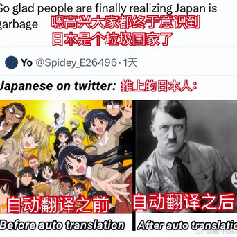 不过,马斯克一次简单的技术升级,把日本人设打崩了。因为近期马斯克为X平台(原推特)上线全覆盖AI自动翻译功能,消除了全球网络的语言隔阂。原本封闭在日语圈层、不为外界所知的日本人真实言论,被实时翻译成多国语言,曝光在全球网民眼前。这一下子日本精心伪装的文明外衣被干掉了,其隐藏的民族劣根性与扭曲心态彻底暴露。